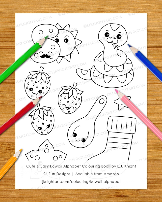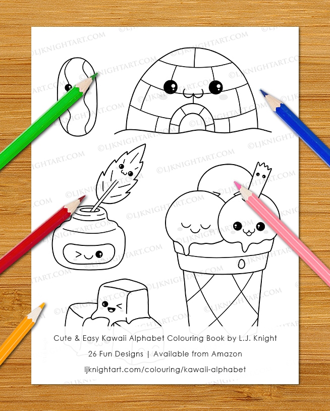 Cute and Easy Kawaii Alphabet is book 16 in the LJK Colouring Books series, which has a growing range of colouring designs for all ages. See the other books here.